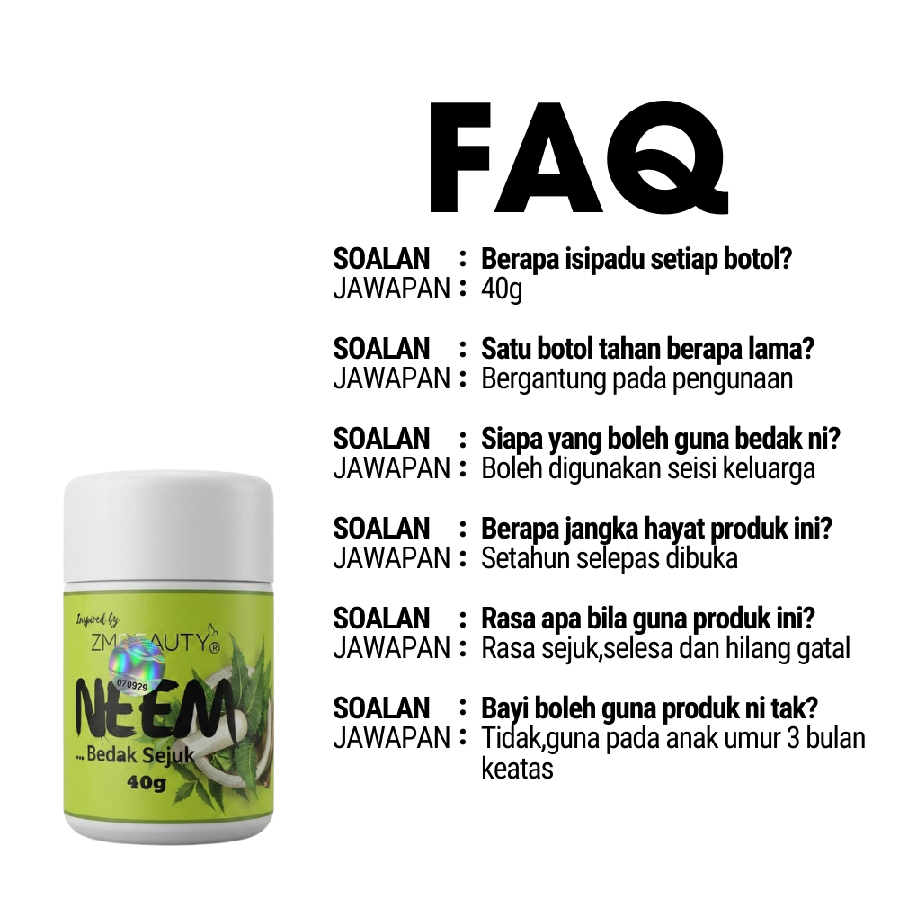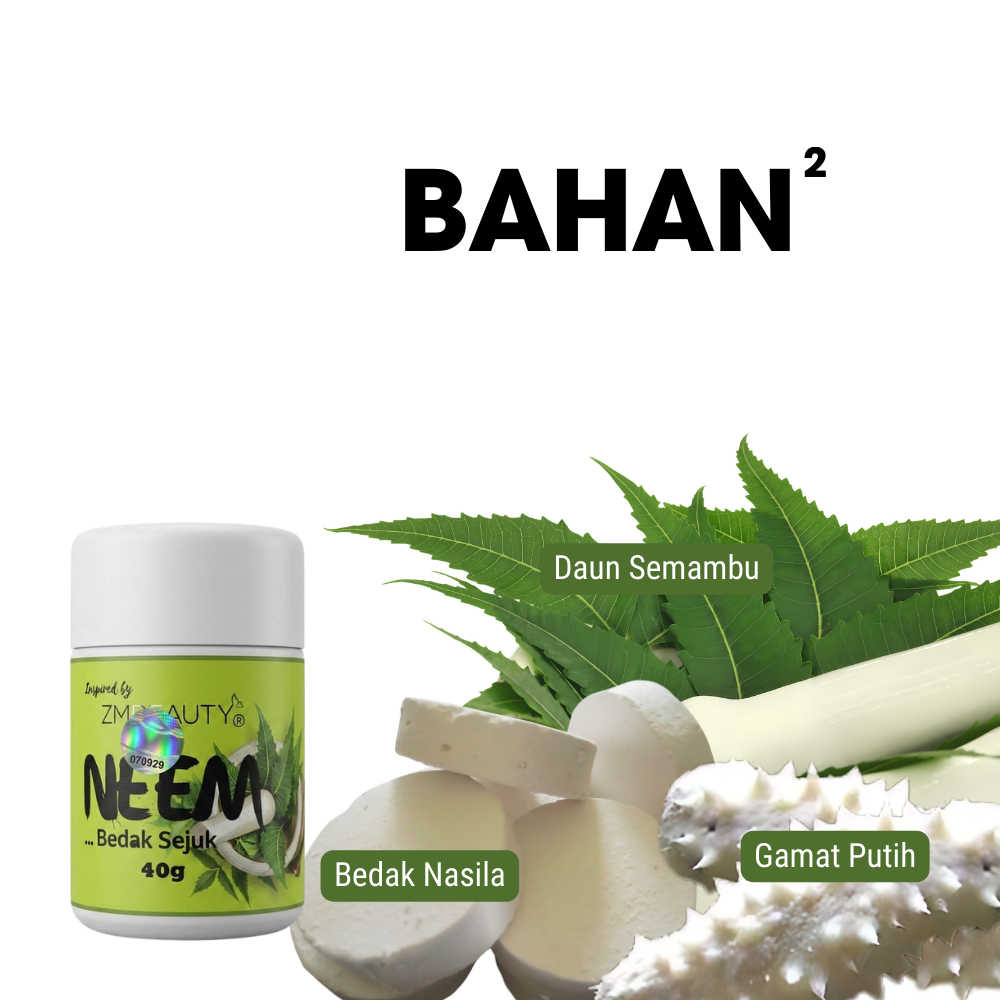 Kami mementingkan ketulenan bahan dalam setiap botol Bedak Sejuk Neem ZMBeauty: